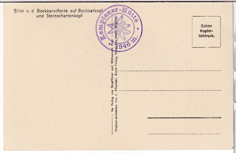 ALTE ANSICHTSKARTE - BLICK VON DER BOCKKARSCHARTE AUF BOCKKARKOPF UND STEINSCHARTENKOPF, IM VERLAG VON BERGFÜHRER UND HÜTTENWIRT FREY;