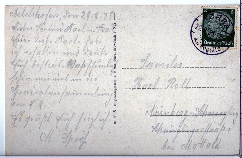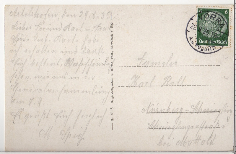 - gelaufen ab Artelshofen am 29.8.1935;