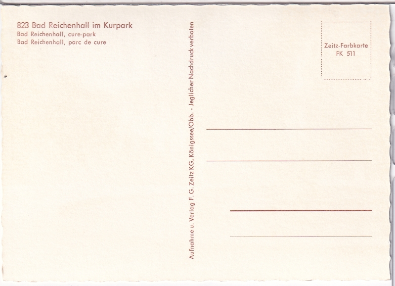 ALTE ANSICHTSKARTE/ POSTKARTE - BAD REICHENHALL - IM KURPARK, AUFNAHME UND VERLAG F. G. ZEITZ KG, KÖNIGSSEE