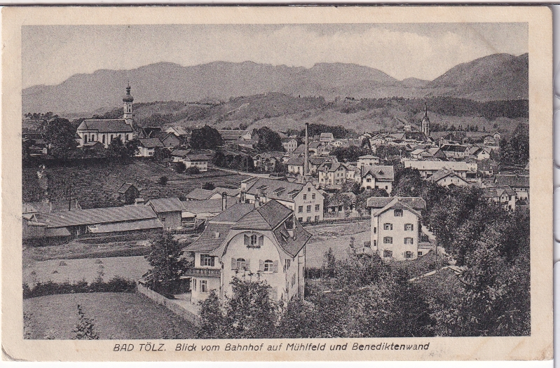 ALTE ANSICHTSKARTE/ POSTKARTE - BAD TÖLZ - BLICK VOM BAHNHOF AUF MÜHLFELD UND BENEDIKTENWAND
