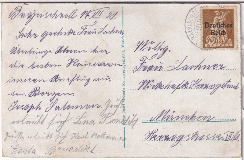 - gelaufen ab Bayrischzell am 17.7.1921;