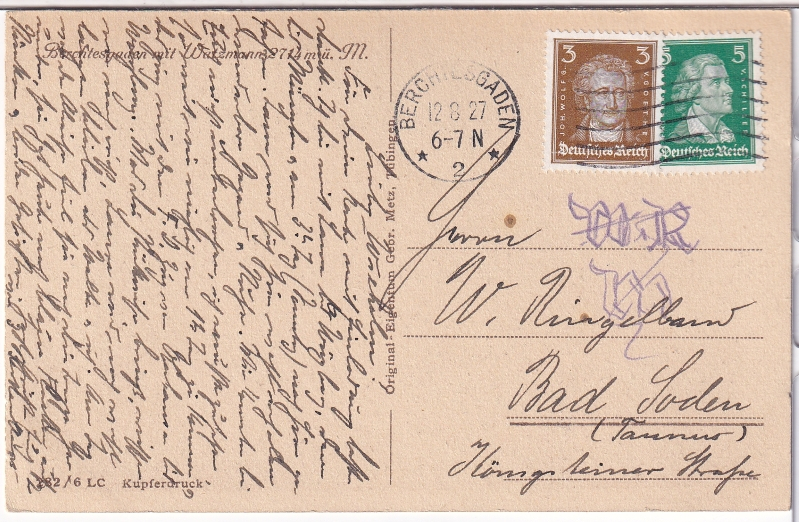 - gelaufen ab Berchtesgaden am 12.8.1927;