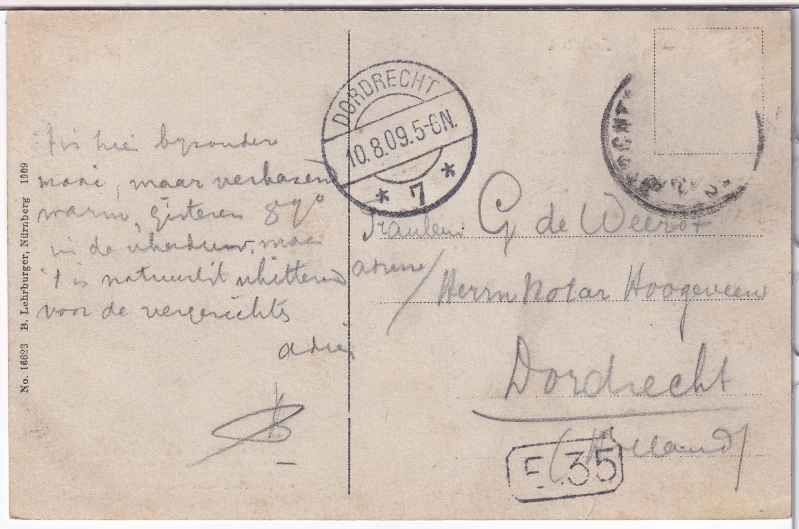 - gelaufen ab Berchtesgaden nach Dordrecht am 10.8.1909;