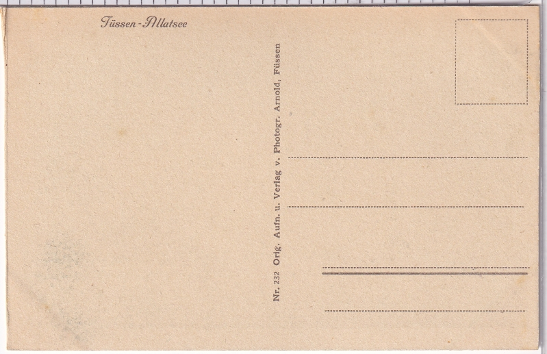 ALTE ANSICHTSKARTE/ POSTKARTE - FÜSSEN - ALLATSEE, ORIGINAL AUFNAHME UND VERLAG VON PHOTOGRAPH ARNOLD, FÜSSEN