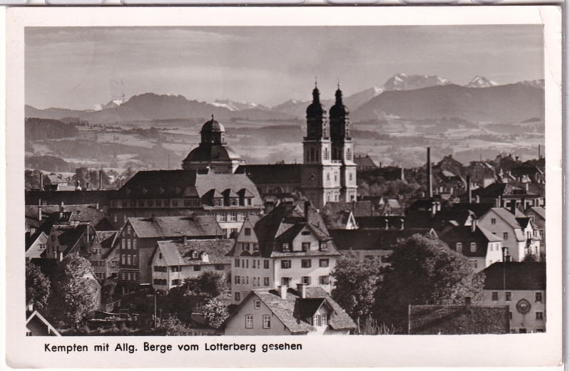 ALTE ANSICHTSKARTE/ POSTKARTE - KEMPTEN MIT ALLGÄUER BERGE VOM LOTTERBERG GESEHEN, ORIG.-AUFNAHME & VERLAG G. BISCHOFBERGER, KEMPTEN