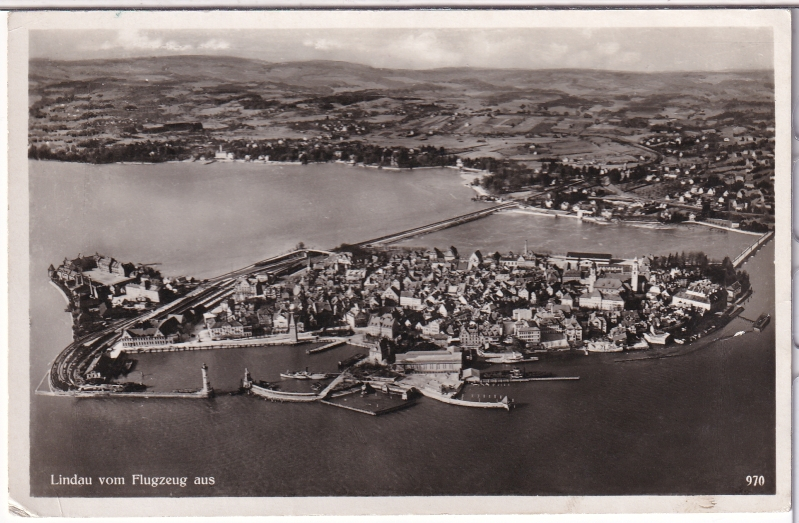ALTE ANSICHTSKARTE/ POSTKARTE - LINDAU VOM FLUGZEUG AUS, MIT NACHGEBÜHR-STEMPEL, VERLAG KARL ALBERT, FREIBURG