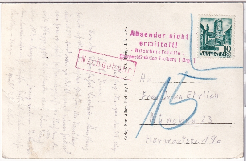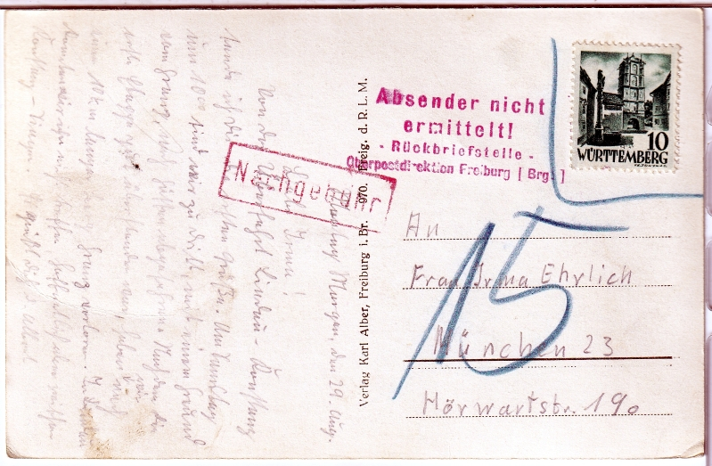 - an Frau Irma Ehrlich in München, Hörwarthstraße 19;