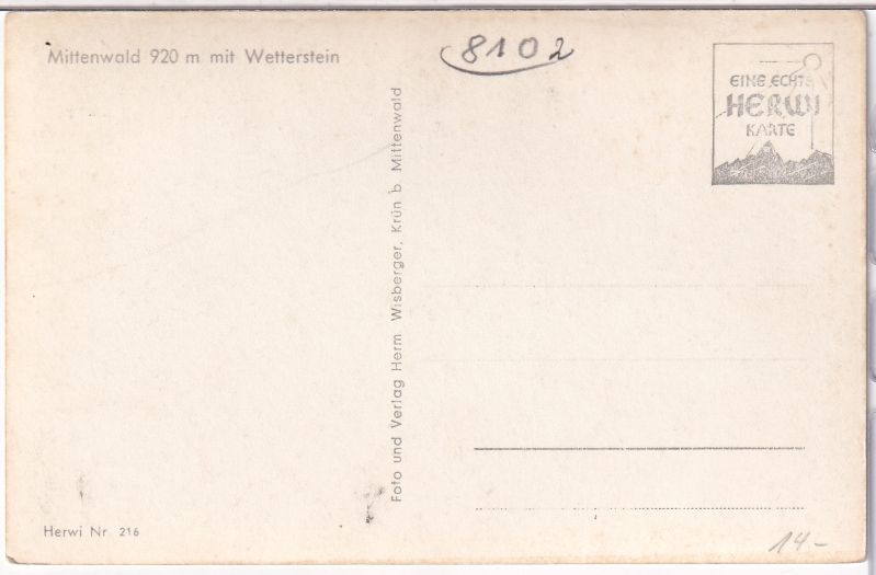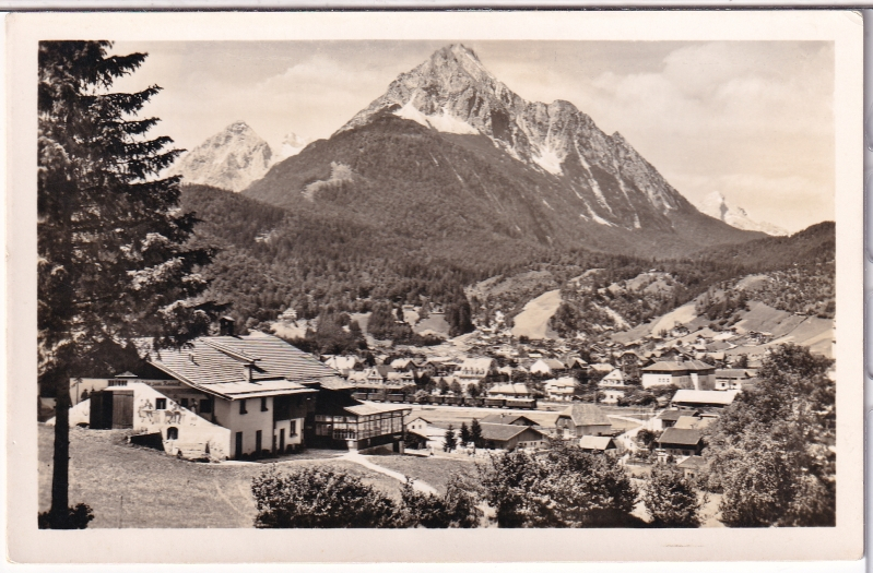 ALTE ANSICHTSKARTE/ POSTKARTE - MITTENWALD MIT WETTERSTEIN, FOTO UND VERLAG HERM. WISBERGER, KRÜN b. MITTENWALD