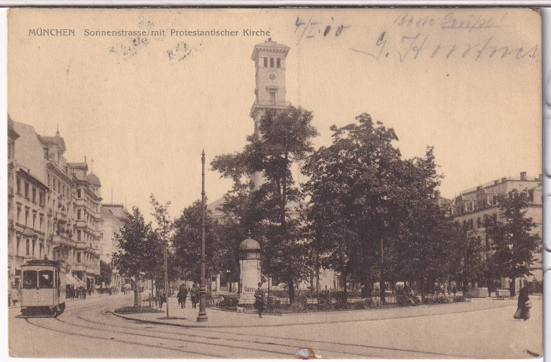 ALTE ANSICHTSKARTE/ POSTKARTE - MÜNCHEN - SONNENSTR. MIT PROTESTANTISCHER KIRCHE