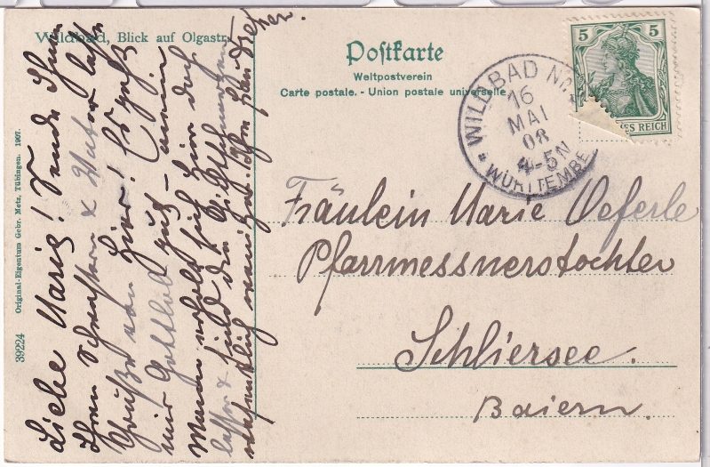 - an Fräulein Marie Oeferle, Pfarrmesnerstochter, Schliersee;