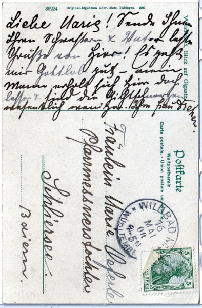ALTE ANSICHTSKARTE/ POSTKARTE - WILDBAD - BLICK AUF OLGASTRAßE, ORIGINAL-EIGENTUM GEBR. METZ, TÜBINGEN 1907