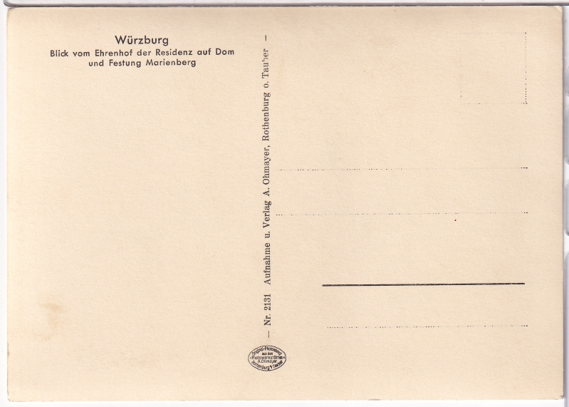 ANSICHTSKARTE/ POSTKARTE - WÜRZBURG - BLICK VOM EHRENHOF DER RESIDENZ AUF DOM UND FESTUNG MARIENBERG, AUFNAHME UND VERLAG A. OHMAYER, ROTHENBURG O. TAUBER