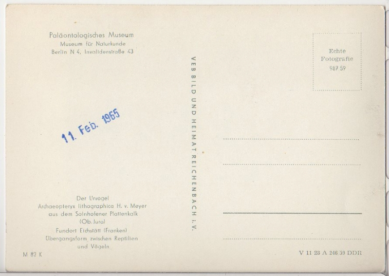 ALTE ANSICHTSKARTE/ POSTKARTE - BERLIN - PALÄONTOLOGISCHES MUSEUM FÜR NATURKUNDE - DER URVOGEL