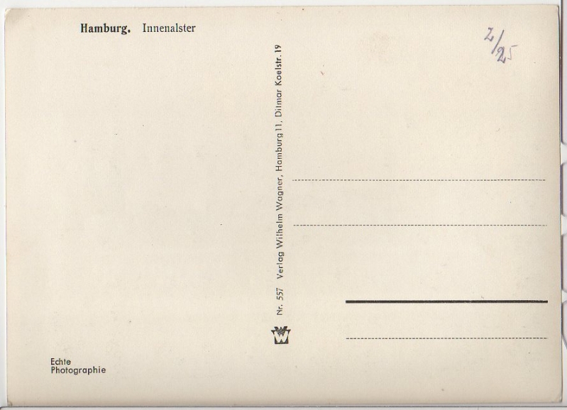 1/2 - ALTE ANSICHTSKARTE/POSTKARTE - HAMBURG - INNENALSTER, VERLAG WILHELM WAGNER, HAMBURG, Nr. 557