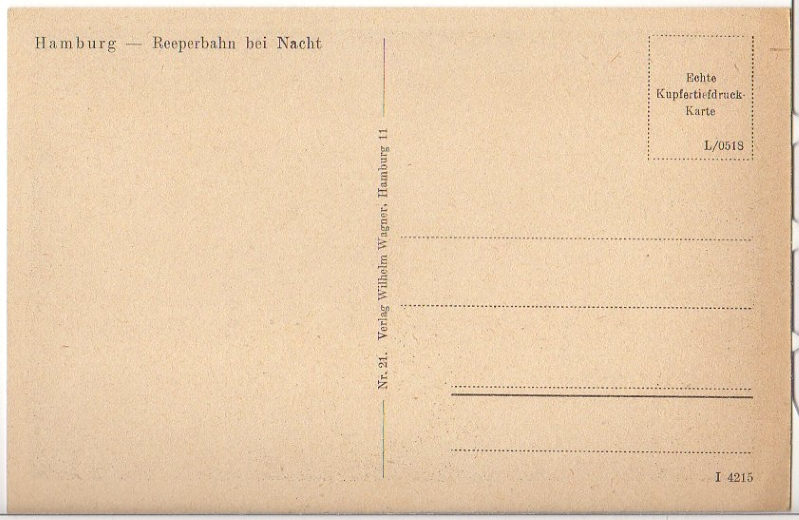 ALTE ANSICHTSKARTE/POSTKARTE - HAMBURG - REEPERBAHN BEI NACHT, VERLAG WILHELM WAGNER, HAMBURG, Nr. 21