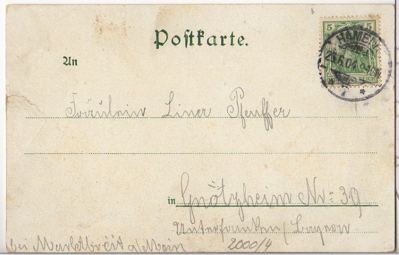 - von Hamburg an Fräulein Lina Pfeuffer nach Gnötzheim (Bayern);