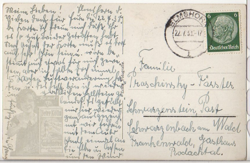 - ab Elmshorn an Familie Braschinsky-Fässler, Gasthaus Rodachtal in Schwarzenbach am Wald/ Schwarzenstein im Frankenwald;