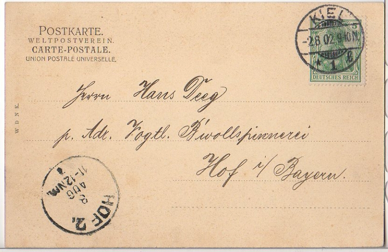 - ab Kiel an Hans Deeg, Vogtländische Baumwollspinnerei in Hof (Bayern);