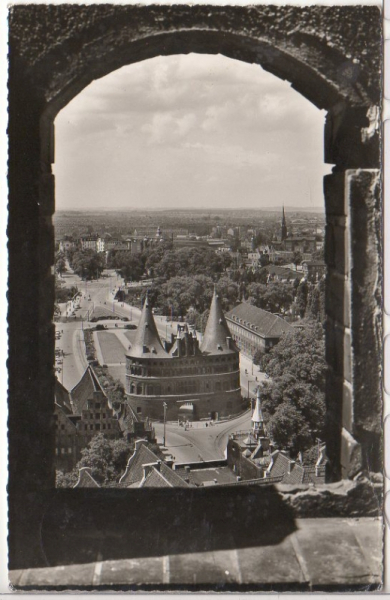 ALTE ANSICHTSKARTE/ POSTKARTE - LÜBECK - BLICK VOM AUSSICHTSTURM St. PETRI AUF DAS HOSLTENTOR