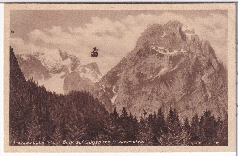 ALTE ANSICHTSKARTE/ POSTKARTE - KREUZECKBAHN - BLICK AUF DIE ZUGSPITZE UND WAXENSTEIN, ALPINER KUNSTVERLAG HANS HUBER, MÜNCHEN;