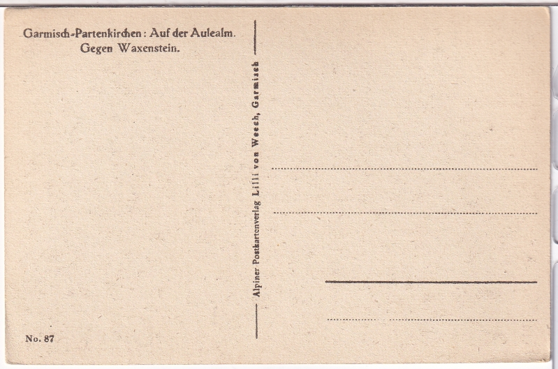 ALTE ANSICHTSKARTE/ POSTKARTE - GARMISCH-PARTENKIRCHEN - AUF DER AULEALM GEGEN WAXENSTEIN, ALPINER POSTKARTENVERLAG LILLI VON WEECH, GARMISCH
