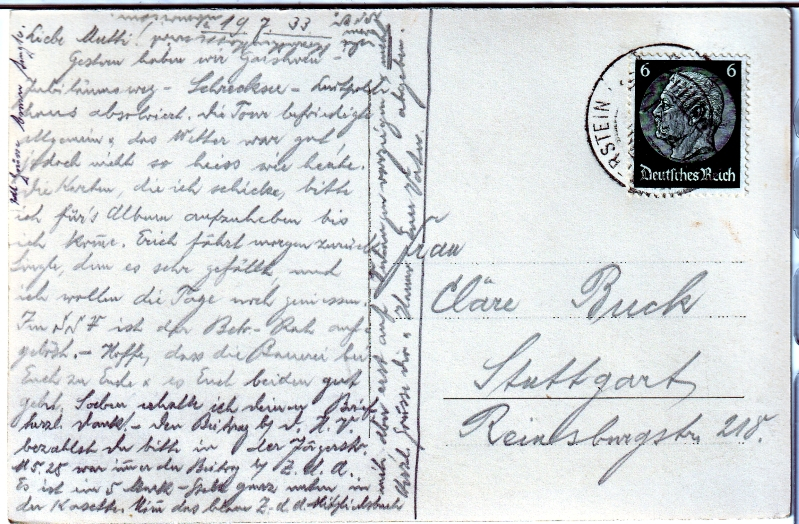- an Clara Buck in Stuttgart, Reichsburgstr. 218;