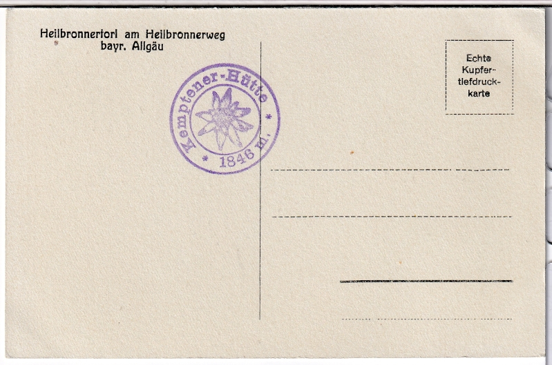 ALTE ANSICHTSKARTE/ POSTKARTE - HEILBRONNER TÖRLE AM HEILBRONNER WEG - STEMPEL KEMPTENER HÜTTE