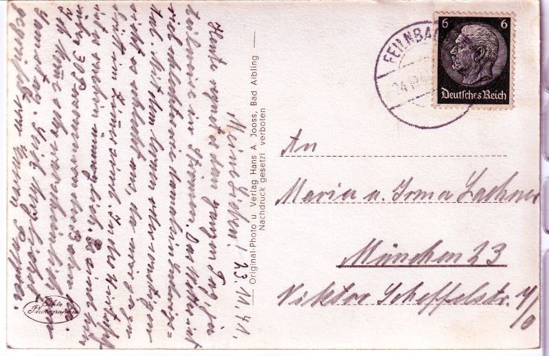 - an Maria u. Irma Lochner in München, Viktor Scheffelstr. 7/0;