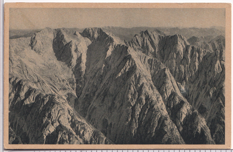 ALTE ANSICHTSKARTE/ POSTKARTE - KARWENDELGEBIET - BLICK VON DER BETTELWURFSPITZE GEGEN NORDEN (SPRITZKARSPITZE, EISKARLSPITZE, HOCHGLÜCK, KAISERKOPF)