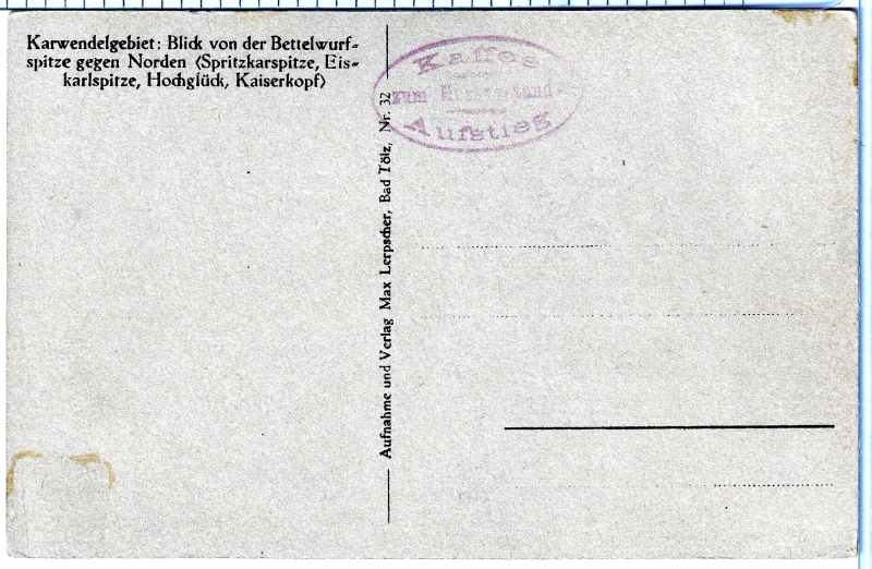 ALTE ANSICHTSKARTE/ POSTKARTE - KARWENDELGEBIET - BLICK VON DER BETTELWURFSPITZE GEGEN NORDEN, AUFNAHME UND VERLAG MAX LERPSCHER