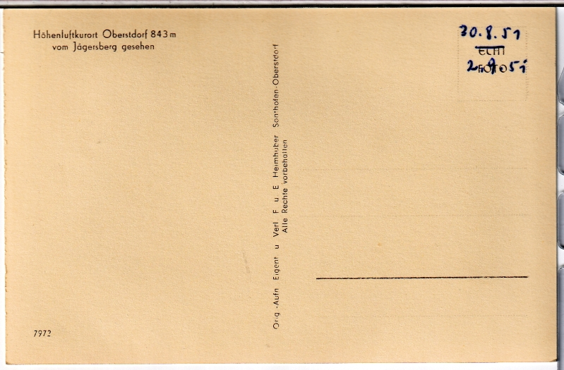 ALTE ANSICHTSKARTE/ POSTKARTE - OBERSTDORF VOM JÄGERSBERG GESEHEN, ORIG.-AUFN. EIGENTUM UND VERLAG F. U. E. HEIMHUBER, SONTHOFEN-OBERSTDORF