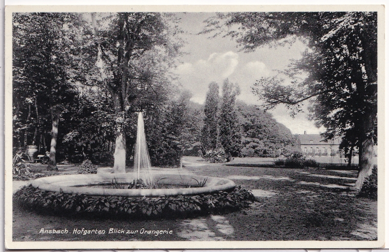 ALTE ANSICHTSKARTE/ FELDPOSTKARTE - ANSBACH - HOFGARTEN, BLICK ZUR ORANGERIE, VERLAG LUDWIG RIFFELMACHER, FÜRTH