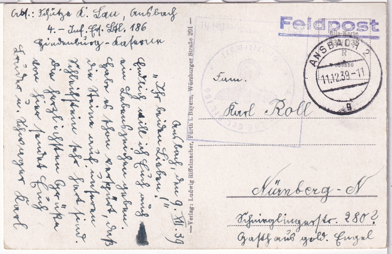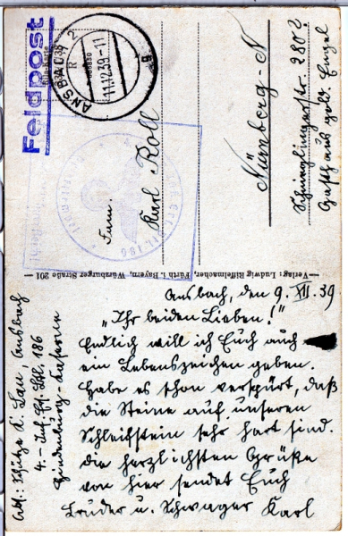 - gelaufen als Feldpost am 11.12.1939;