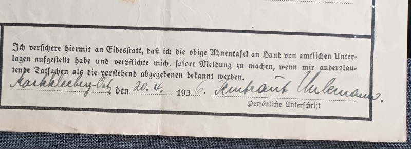 - Original Ahnentafel/ Ahnenpass zur Dokumentation und Nachweis der arischen Abstammung im 3.Reich;